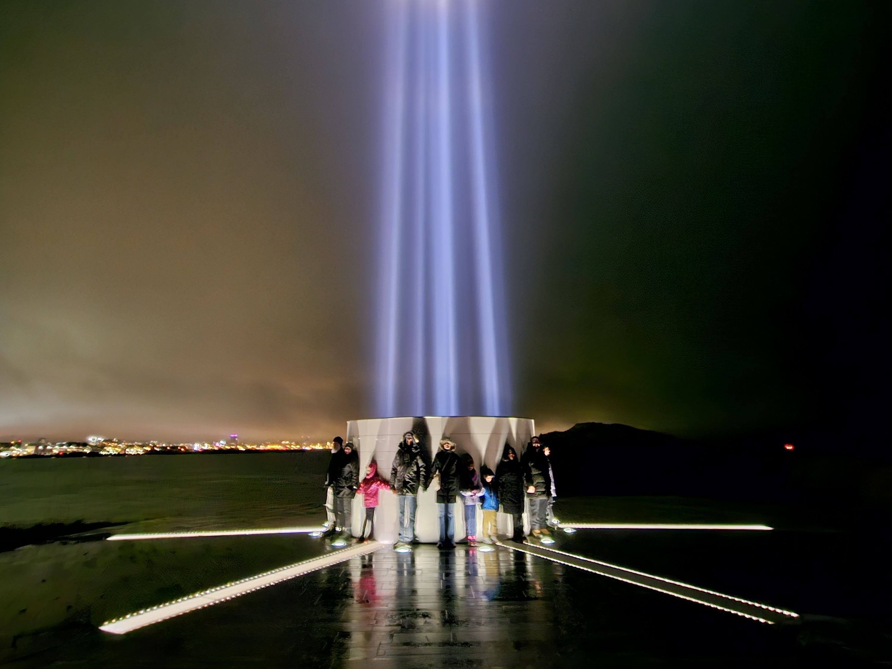The Imagine Peace Tower is more than a work of art; it's a testament to human aspiration and it symbolises John Lennon and Yoko Ono's continuing campaign for world peace. Designed in the form of a tranquil wishing well, its sides are adorned with the inscription "IMAGINE PEACE" in 24 languages and stands as a powerful reminder that peace knows no borders. When darkness descends, the tower comes alive with a mesmerising display of light. The beams, stemming from several lights, are ingeniously guided through mirrored corridors. They then ascend to meet the ever‑changing Icelandic elements in a unique way!